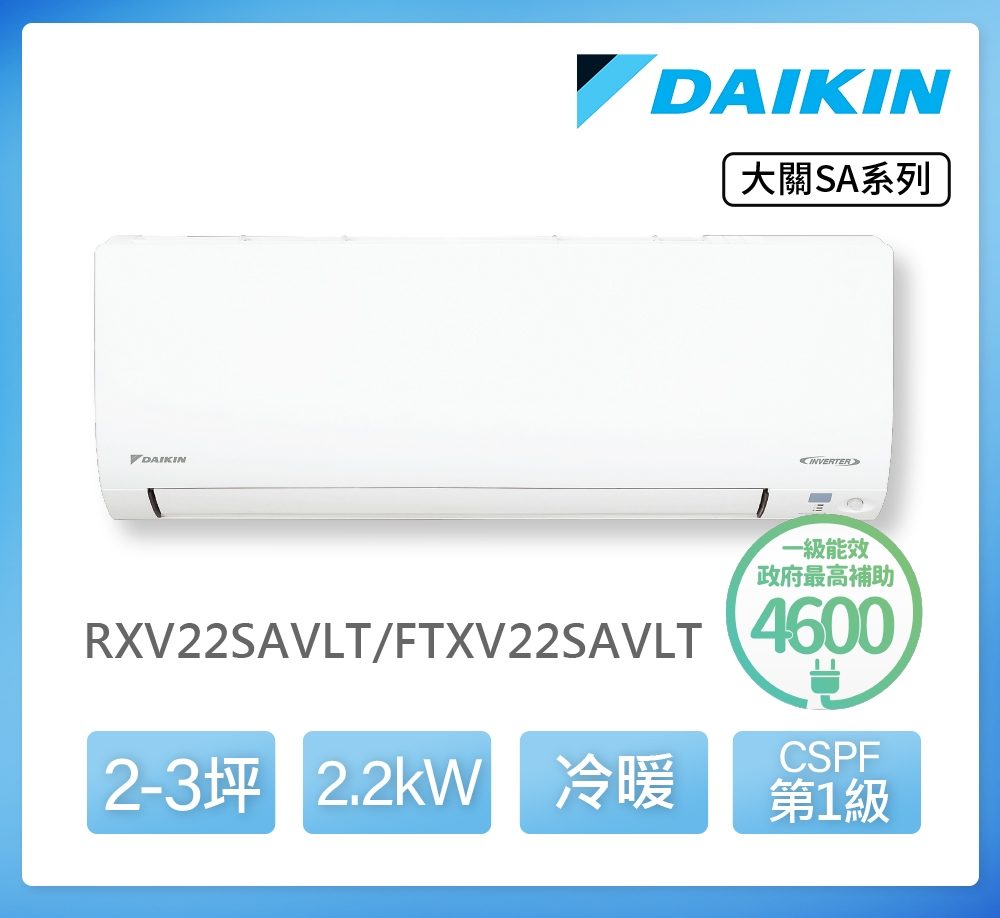 DAIKIN 大金 分離式冷暖冷氣/變頻空調/大關SA系列/RXV22SAVLT/FTXV22SAVLT(適用坪數:2~3)