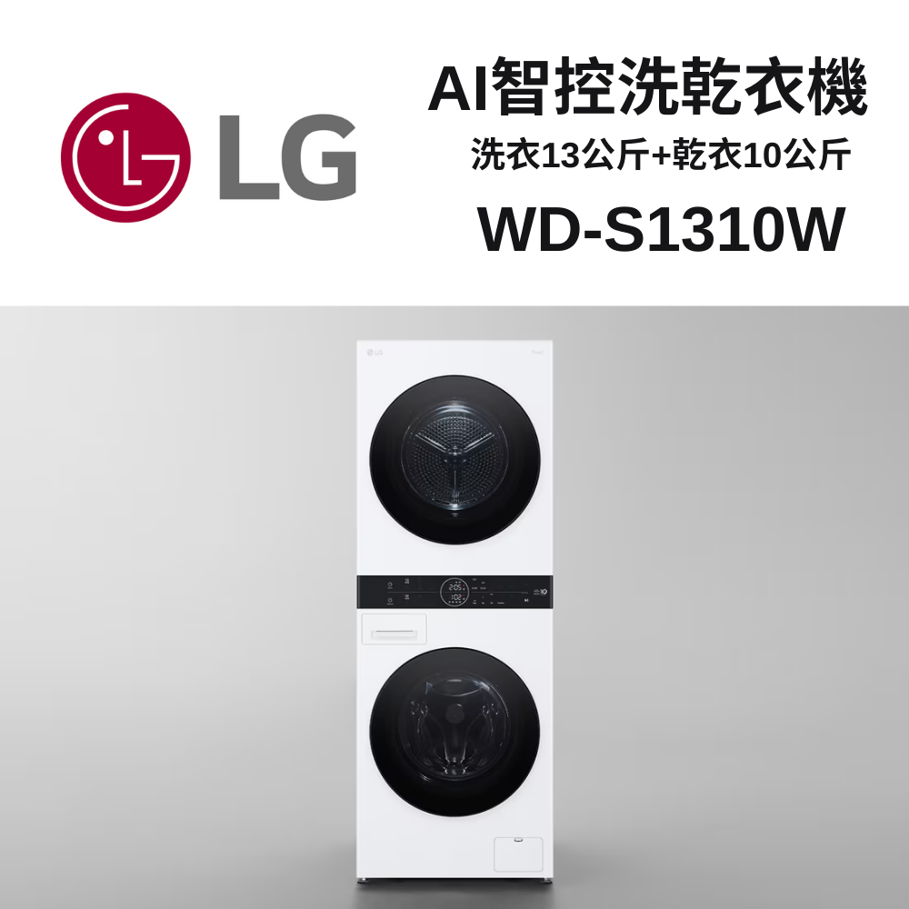 / LG 滾筒式洗衣機/WashTower™ AI智控洗乾衣機 /洗衣13公斤+乾衣10公斤/WD-S1310W冰瓷白