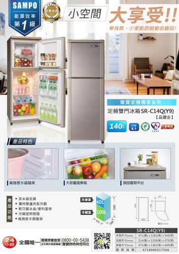 SAMPO聲寶 一級效能定頻冰箱/定頻140公升/ SR-C14Q(Y9)
